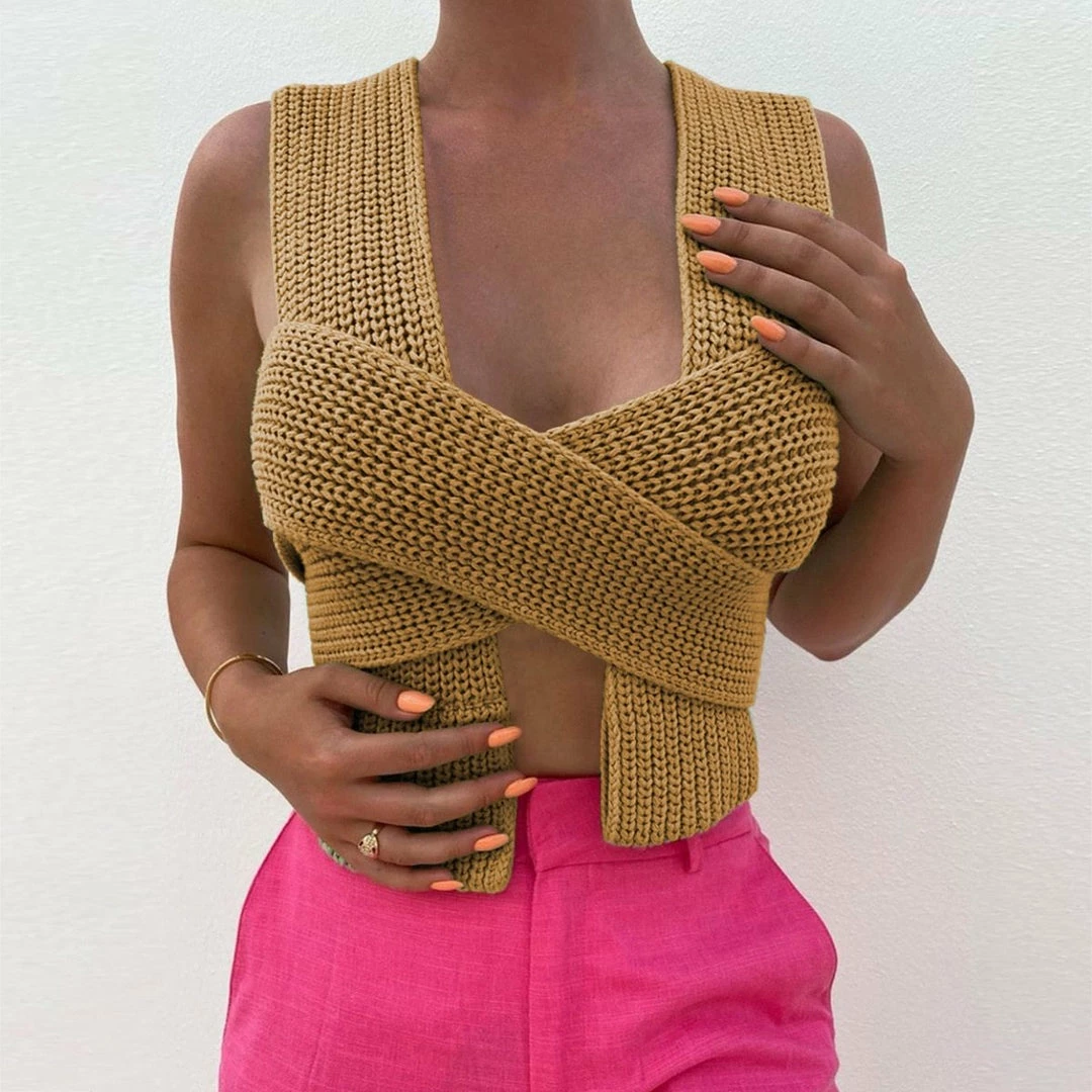 Our Birdie Knitted Crop Top features an empire waist knitted design and straps that run from the front to the back for an adjustable back tie closure. This knitted crop top has a longer bottom side strap to allow for more of the give you need when tied in the back. Style this top seven ways and counting. Pair with your favorite denim, leggings, shorts, and even for layering over blouses.