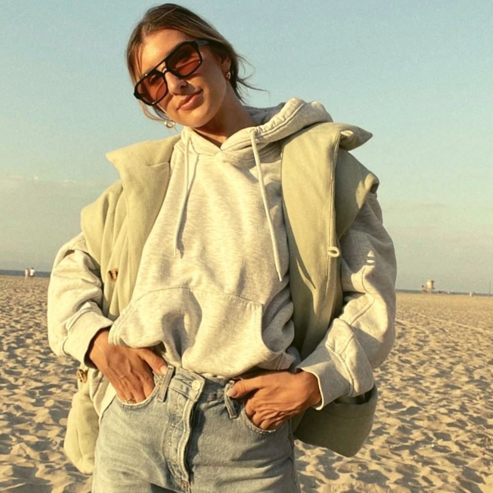 Erin’s wearing a size small. Measurements: Bust: 33”