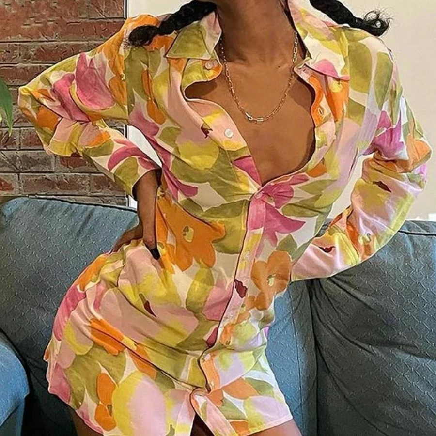 Florals for spring. You know the line. The Dania Shirt Dress features a flirty floral print throughout, long sleeves, a relaxed fit, standard front button closure, spread collar, and v-neckline. We’re pairing this mini shirt dress with strappy heels for a spring day party, and then transforming her into a long shirt styled with denim and a white tank underneath for a casual look. Shirt dress hits above the knee.