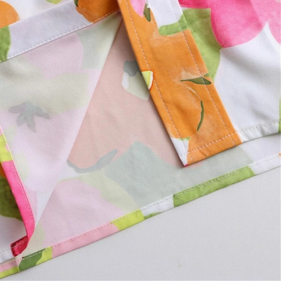 Available in Floral. Has a relaxed fit.