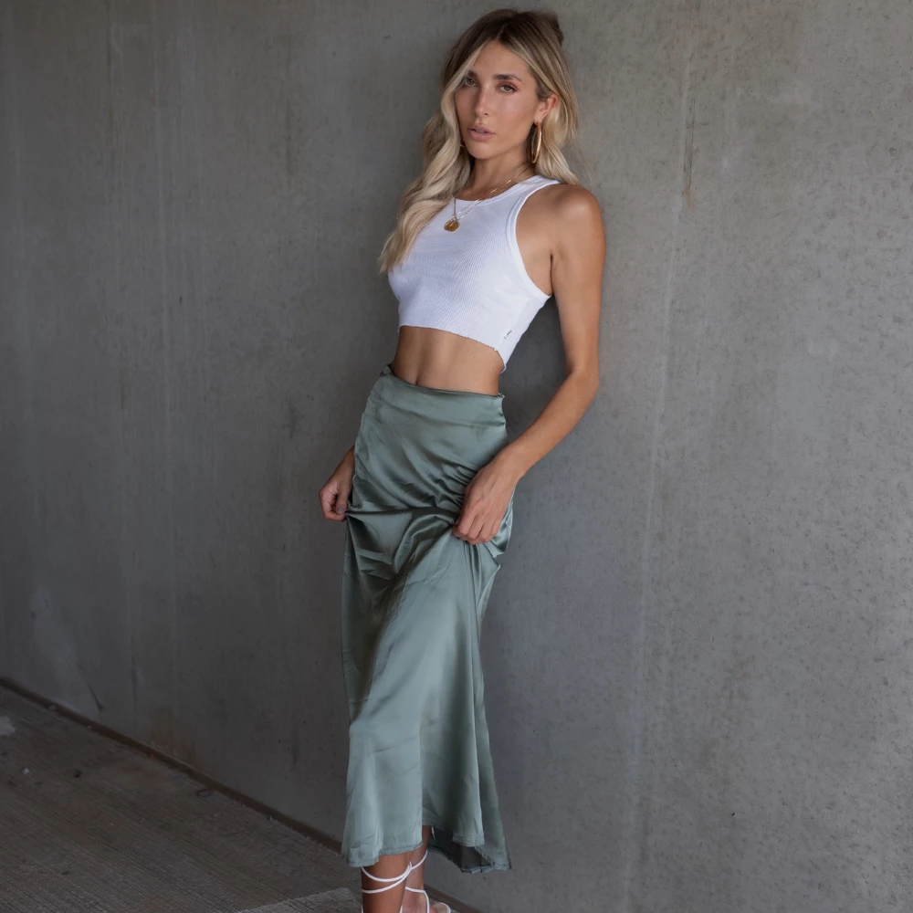 Throw a sweater on your new favorite maxi skirt. The Elijah Satin Maxi Skirt features a flattering straight silhouette, natural waistline, and hits at mid-calf. We’re loving the Autumn and Winter color palettes and the simplicity of pairing the skirt with a tank and heels, or sweatshirt and tennis shoes. Sleek, comfortable, and ready for anything.