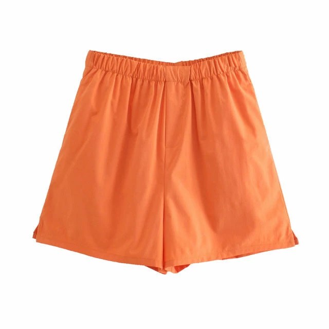 Everything is better in orange, and this shorts set is topping the charts. The Gigi Orange Shorts Set features an oversized poplin shirt with a front chest pocket, turn-down collar, single breasted button closure, and tonal buttons. Also comes with the matching high waisted shorts with a thicker elasticated waistband. Leave the top semi-unbuttoned, or style the poplin shirt with your favorite pair of shorts, denim or leggings. Either way, you’re in for a pop of color, a flattering lounge set, and a comfortable fit. Pair with flats, sandals, and hit the city.