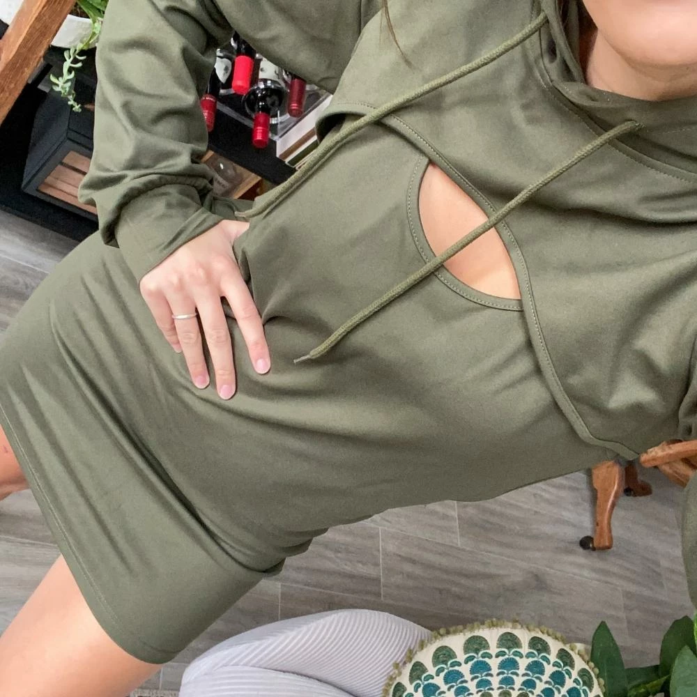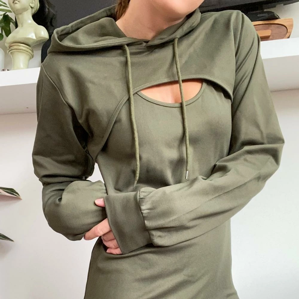 The Irene Hoodie Dress set is for those days where you can’t think about throwing together an outfit. This two-piece set comes together and features a cropped hoodie with ribbed cuffs and drawstring tie, along with a tank dress to match. Get into some slides and work from home, or pair with white kicks to head out. Dress and Hoodie are not attached so style each piece on its own, too.