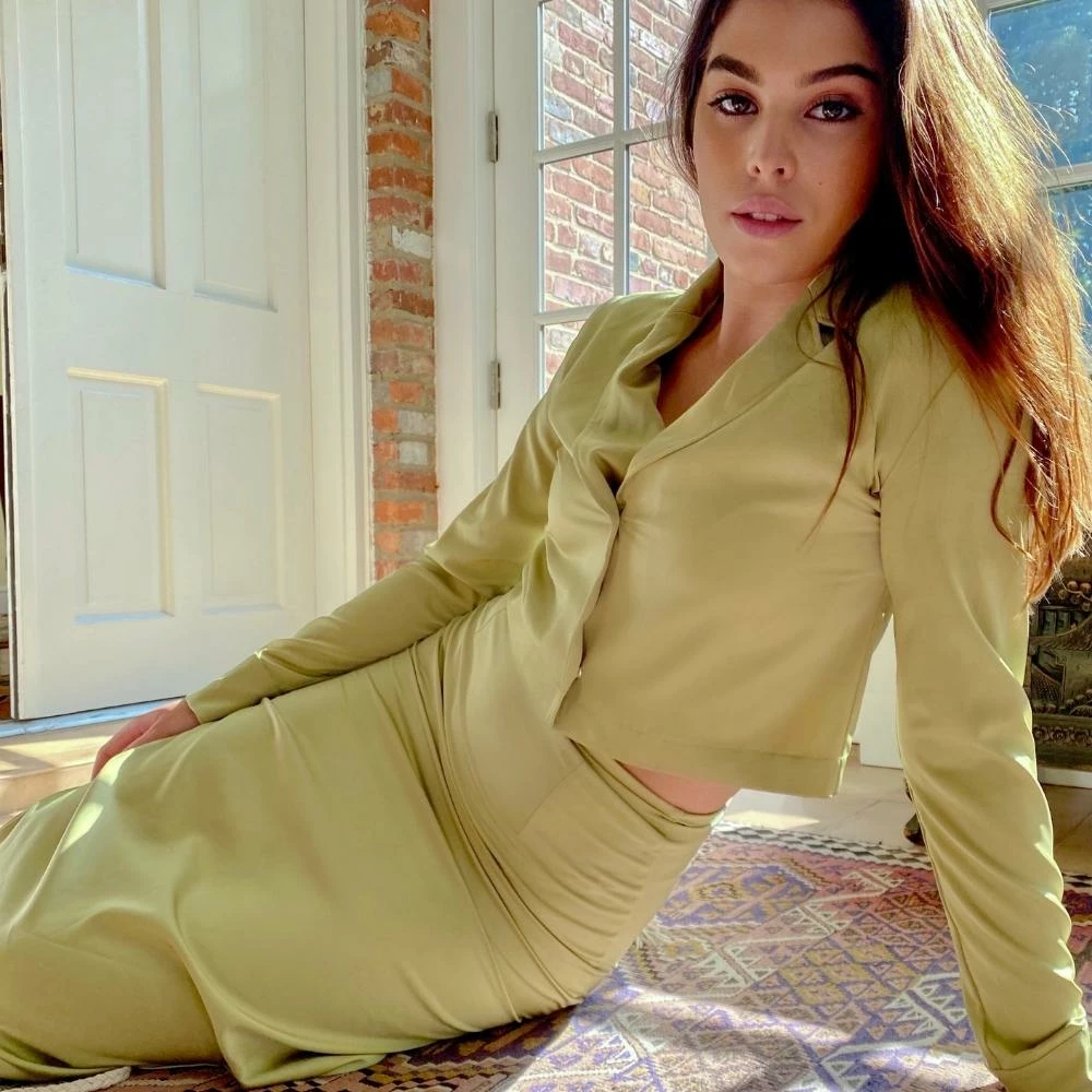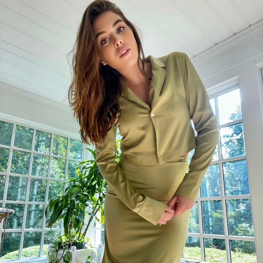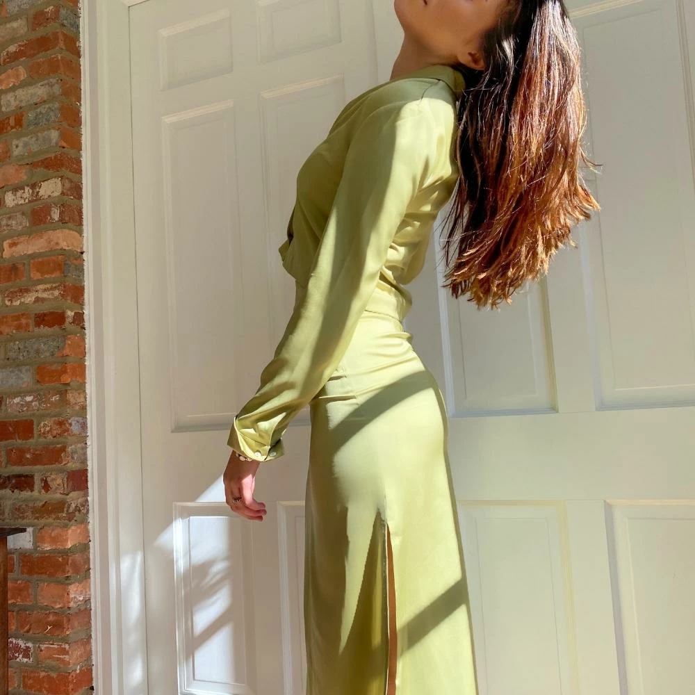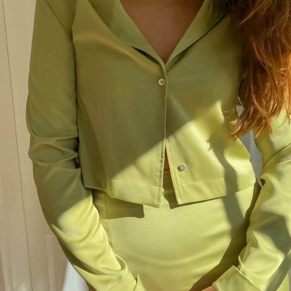 The Light Green Midi Maxi Skirt Set is a great midi-maxi skirt set. The satin midi skirt features a high rise, side slit, and hidden side zip, and is sold with the matching quarter sleeve crop top. The top features a turndown collar, loose fit, and semi-cropped length. We love the cut of the skirt and placement of the slit which crafts a beautiful silhouette. Pair together, or style the top with your favorite denim, or the skirt with your favorite white tank top. Perfect either way.