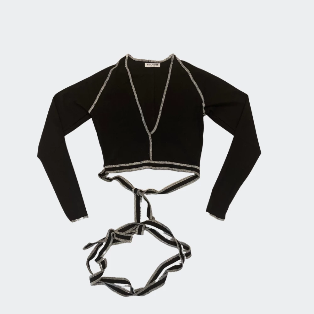 Blouse that ties at the waist? Yes please. This wrap crop top is short, sweet, and soft but with some edge. Our Riley Wrap Crop Top is a contrast overlock jersey knit top with long sleeves, a waist wrap tie, v-neckline, and a cropped cut. We love how soft and customizable this top is. Team it up with high rise denim, faux leather pants, heels or kicks and some light jewelry and you’re ready for day or night.