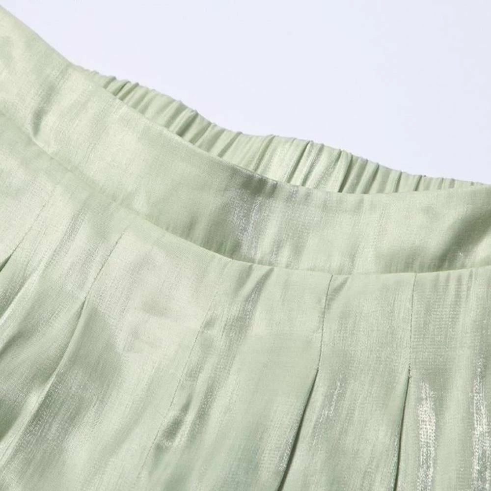 Available in Mint Green. Comes as a two-piece set. Top fits loosely over the body. Fitted Waist.